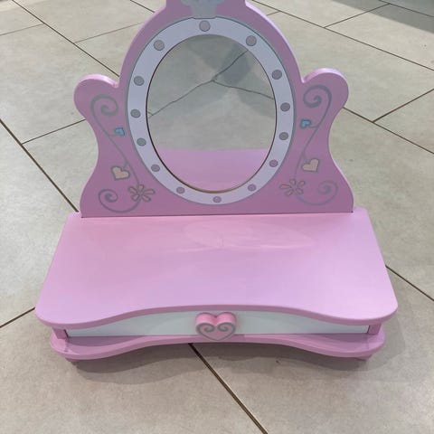 Sminkebord, Kinderødt med spejl, Lege makeup, Legemakeup.