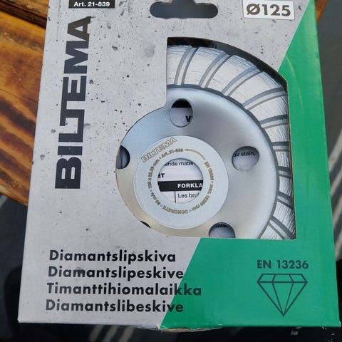 Biltema art 20-849 slibeskive med en diameter på 80 mm. Skiven har en maksimal hastighed på 8500 rpm og er velegnet til brug ved 1500-20000 rpm. Fremstillet i sort materiale, designet til slibning og overfladebehandling. Ny pris 129 pr stk jeg sælger for 50 kr pr stk