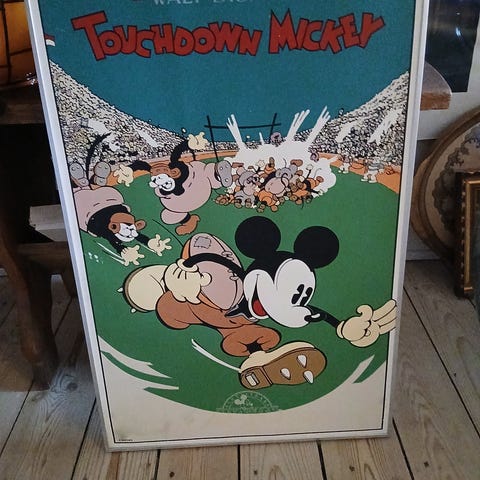 Disney print venner der fisker , Mickey Mouse & Fedtmule. Der står Peter Emmerich nederst i hjørnet af rammen