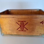Fed gammel trækasse med metalbeslag. Måske har den indeholdt en rigtig dyr flaske bobler 🥂🍾 21 x 36,3 cm. Højde 21,3 cm.
