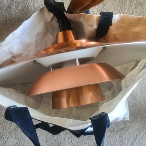 Små hvide malerstænk på øverste halvdel af lampen (mod loftet) pga loftmalerarbejde.