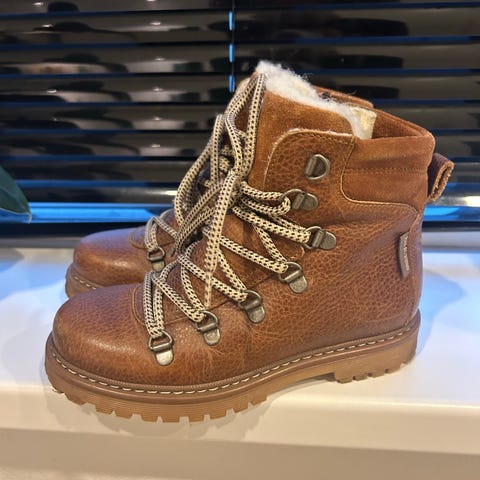 Vinterstøvler, str 21. Angulus i brun læder foret med uld indvendig.