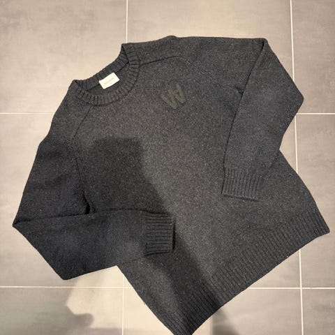 Wood Wood S Grå Herre Striktrøje i strikmateriale. Trøjen har en halv lynlås og ribstrikkede kanter ved krave, ærmer og bund. Passer til mænd og har en grå farve.
