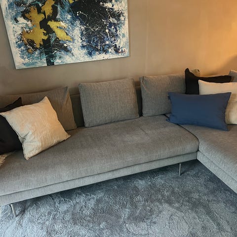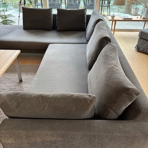 Flot sofa i lys grå stof. Kan ses på Vendelboe møbler's hjemmeside. Sofaen hedder Vendelbo Trace er købt for ca 25000 kr i juli 2024, men kun brugt i 2 mdr . Sælges pga pladsmangel.