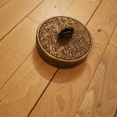 Smuk, kantet kobberskål til nøgler, smykker mv
