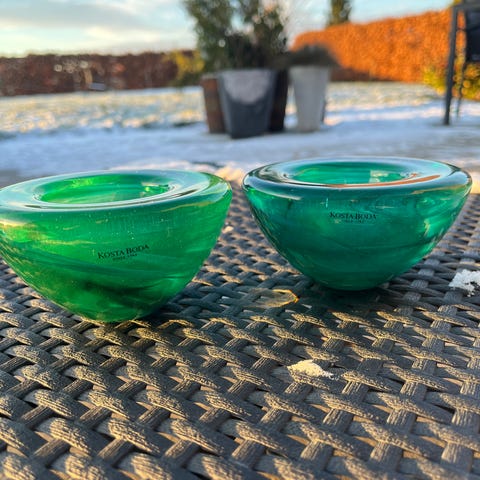 2 Kosta Boda glas fyrfadsstager, signeret Anne Nilsson, vintage