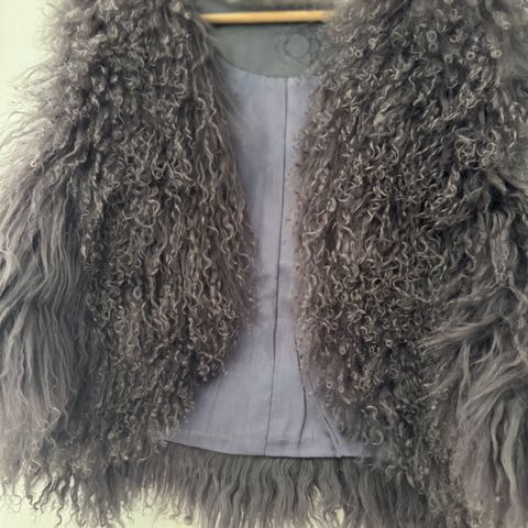 1 Furst/ Klink Andersen pelsvest med fluffy pelskrave. Str. 40