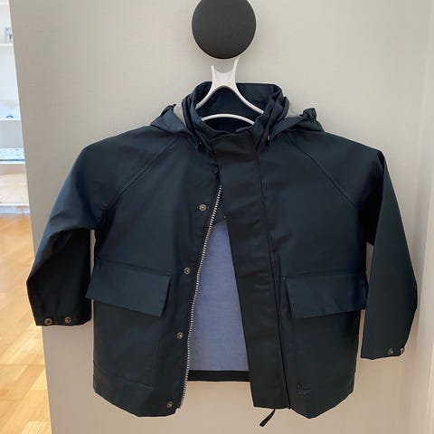 Molo unisex regnjakker i størrelse 146/152. Jakken har hætte og lynlås foran. Materialet er designet til at beskytte mod vind og vejr. Jakken har lommer og en refleksdetalje bagpå for øget synlighed.