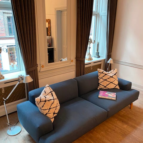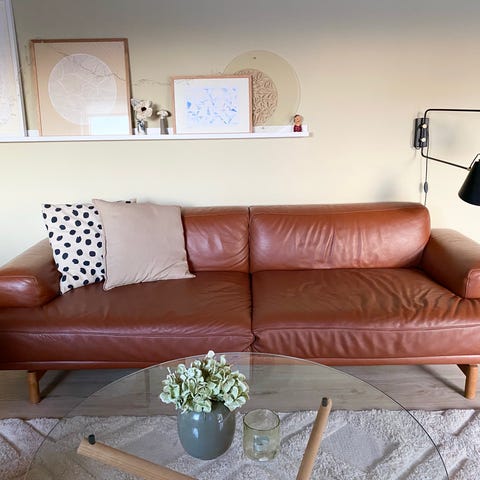 Ca. 5 år gammel, vasket og plejet efter alle kunstens regler men har stadig opnået lidt patina.
