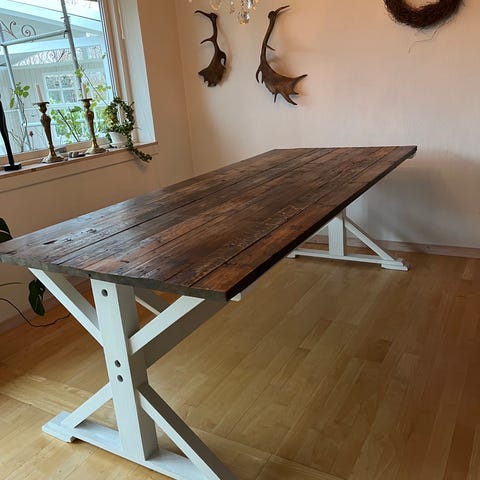 Vi sælger vores flotte spisebord i massivt træ, som vi har været rigtig glade for. Bordet har et unikt, rustikt udtryk med masser af varme og charme.