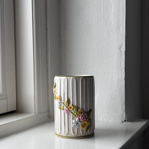 Vase, Lille retro vase/krukke, Laholm?, Sød lille vase/krukke i retro design. Ligner en lille krukke fra Lahom. Måler 8 cm i højden, 6 cm i diameter, bund og 4,5 cm i diameter, top.