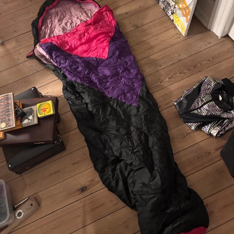 Explorer Siberia Sovepose i rød og blå farve. Soveposen er designet til udendørs brug og har en polstret inderside for komfort. Den har en rummelig form og leveres med en sort opbevaringspose med røde detaljer.