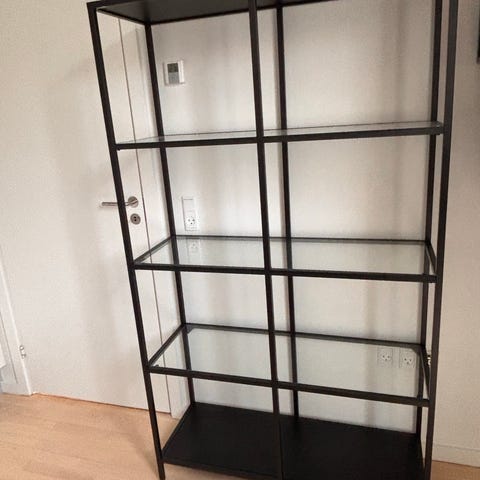 Sælger 2 smukke, velholdte stålreoler som kombinerer let stål og glas på en elegant måde. Perfekt som cd-reol, til pynt, små planter eller samling af objekter (fx biler).