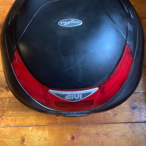 Givi top boks med rygstøtte V z46 og siddetasker.