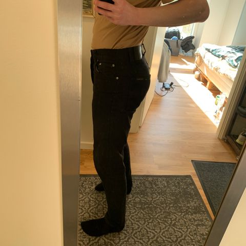 Størrelsen er W27, men passer som en W30. Altså hvad der svarer en medium. De måler fladt henover livet 39 cm, hvilket svarer til 78 cm i livvidde omkreds på.