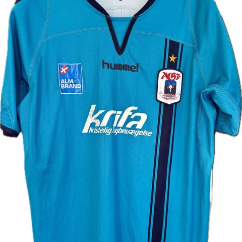 I 2002 fejrede AGF 100-års jubilæum, og denne blå Hummel-trøje blev lanceret som en hyldest til klubbens stolte historie. Den markerer både en sportslig og kulturel milepæl i Aarhus, hvor tradition og fremtid gik hånd i hånd.