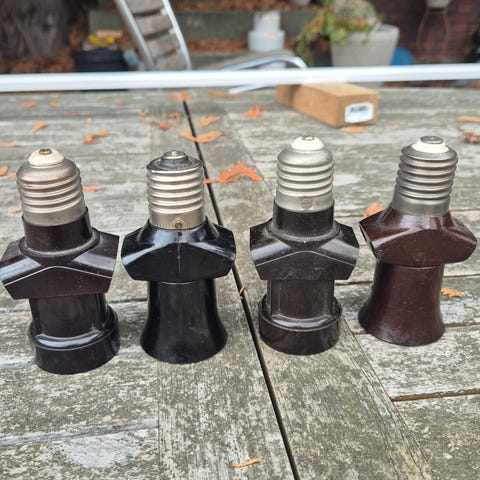 Snydeprop, retro, Fuld funktionsdygtige snydepropper i bakelit, monter den blot i fatningen E27 og du har ekstra strøm udtag.