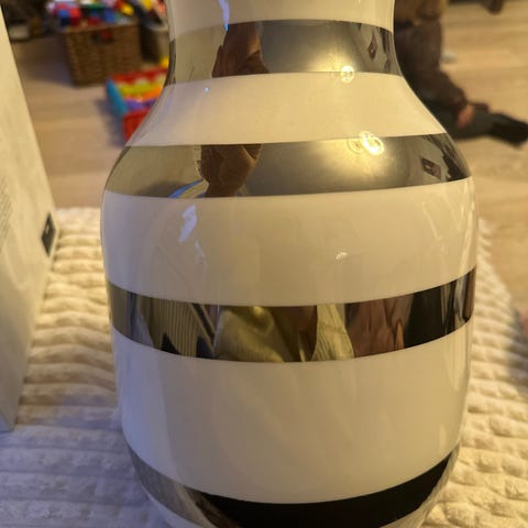 Kähler Omaggio Vase med sølv og hvid stribet mønster.