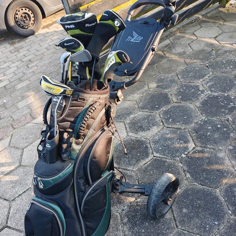 Sælger et komplet og klassisk Ping golfsæt, samlet i en smuk retro hvid Ping vognbag – et ikonisk setup til den golfer, der sætter pris på kvalitet og historie.