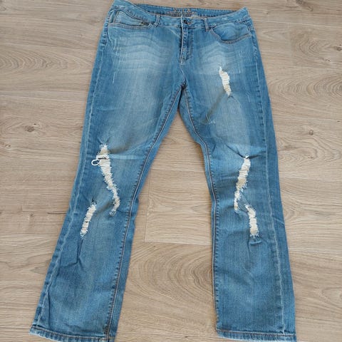 Fine jeans men har få en plet på låret. Tror den hvide plet på baglomme er del af designet.