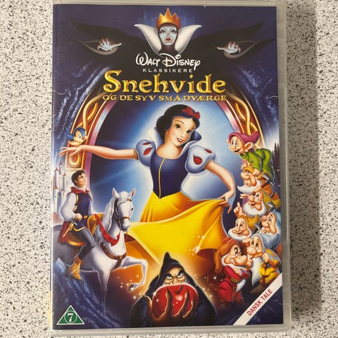 Walt Disney Snehvide og de syv små dværge DVD med dansk sprog. Indeholder den klassiske animerede film om Snehvide og de syv små dværge. DVD-format til afspilning på kompatible enheder.