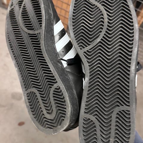 Adidas Superstar sneakers i størrelse 43. Skoene er hvide med røde og blå detaljer. Fremstillet i materialer egnet til hverdagsbrug. Designet til både komfort og stil.
