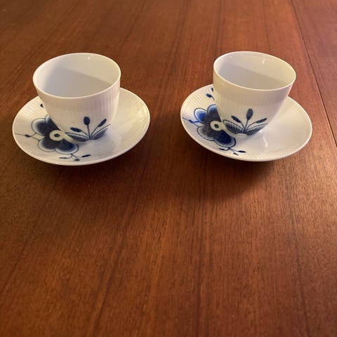 Royal Copenhagen espressokopper med underkopper i pastel farver