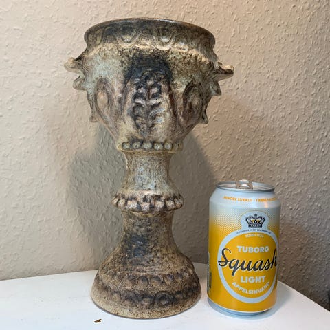 Mål: højde 20 cm, diameter 16 cm hvor den er bredest og 11 cm i toppen