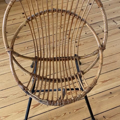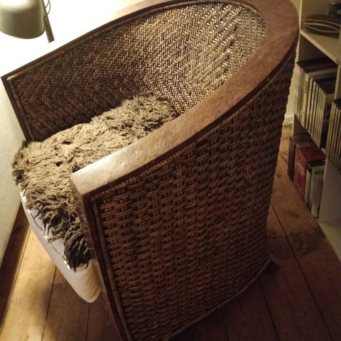 Det er den skønneste kurvestol med høje sider. Det er fransk flet over det hele, og den har den skønneste farve.