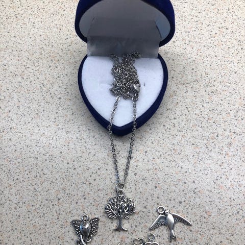 Halskæde, Halskæde med hjerte til at sætte to billeder ind i ,samt æske i velour, det er nyt