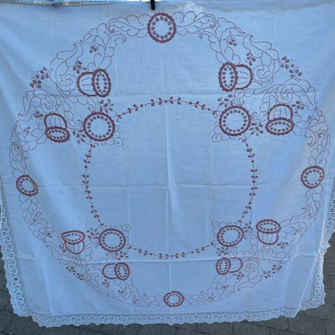mg5378 Fin kaffedug i rosa med broderi str. 105 x 90 sender gerne efter aftale