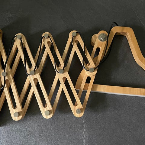 Ny håndlavet lampe i coated papir og skind på toppen, dansk produceret.
