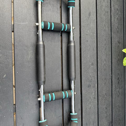 Siddende armtræningsmaskine med handske til svag arm og omdrejningstæller. Ældre model men kun lidt brugt. Købt fordi modellen dengang blev brugt på min mors plejehjems genoptræningscenter.