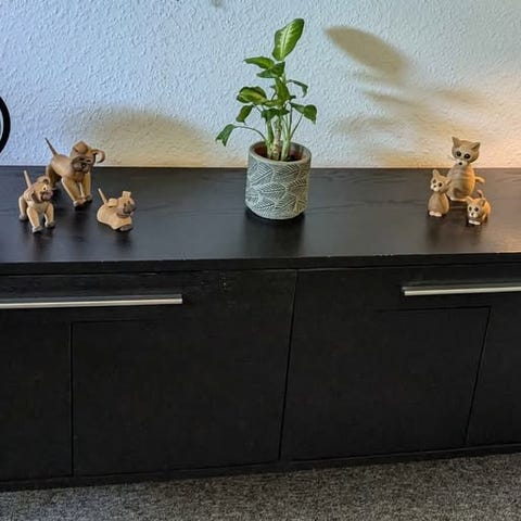 Den falder lidt på midten som det også kan ses på billederne taget forfra, den har ikke gjort det før vi flyttede så det skyldes muligvis ujævnt/skæv gulv hos os.