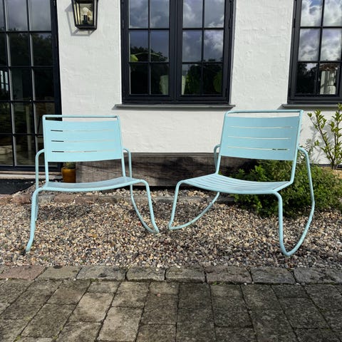 Sæt bestående af 4 stabelbare stole lavet af sølvfarvet stål. Stolene har armlæn og et design, der gør dem velegnede til både indendørs og udendørs brug. Materialet sikrer holdbarhed og nem rengøring.