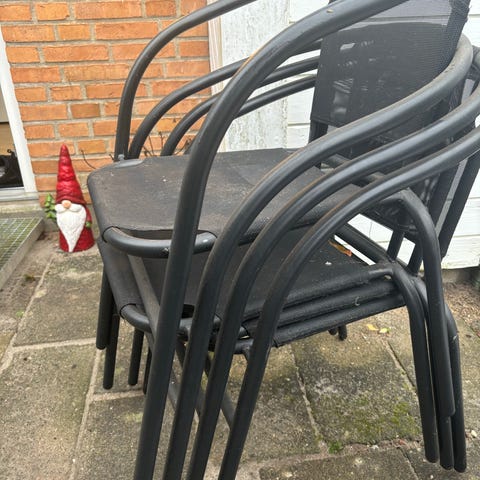 Stabelbare metalstole i sølvfarvet stål 4 stk