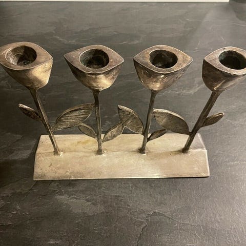 De er gamle og har været brugt som stager og skal derfor lige rengøres en smule. Men mærkerne i bunden er flotte og har kun sliddet fra at stå på bordet i så mange år.