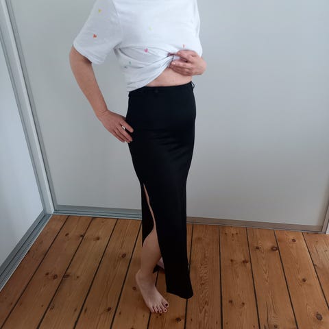 flot lang sort fløjlsnederdel med høj slids i siden Dejlig varm