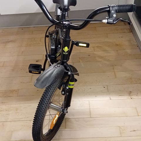 Specialized Hotrock 16 børnecykel med 16 tommer hjul. Cyklen er sølvfarvet med orange detaljer. Den har en robust ramme, kædeskærm og komfortabelt sæde.