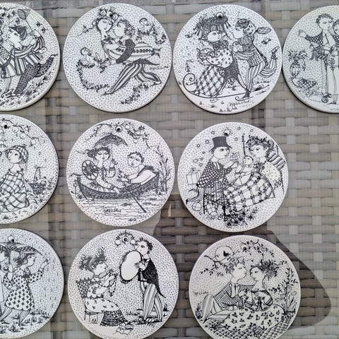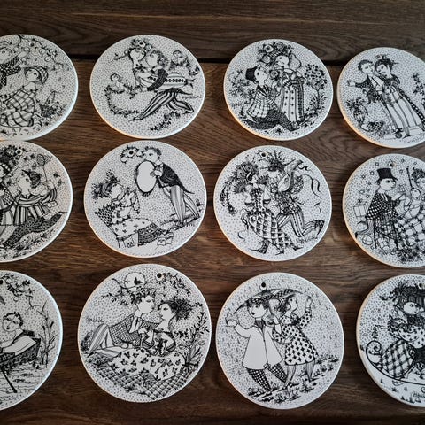 Bjørn Wiinblad månedsplatter sorte, 12 stk sælges samlet
