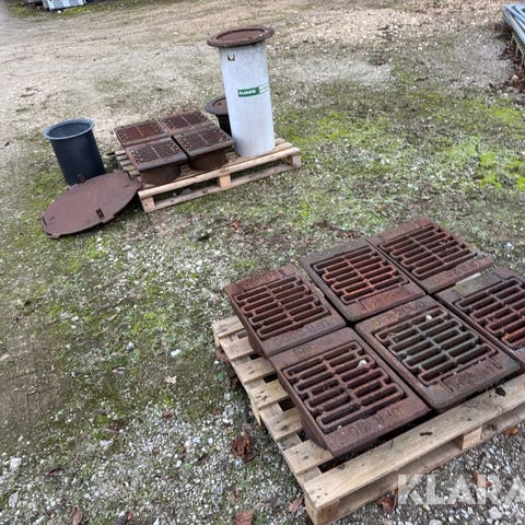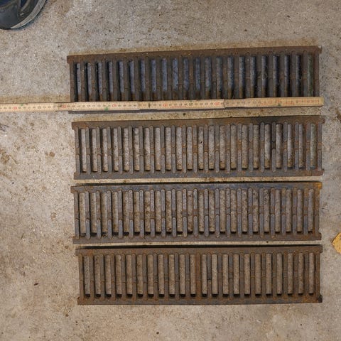 Støbejernsrist der er lidt beton på