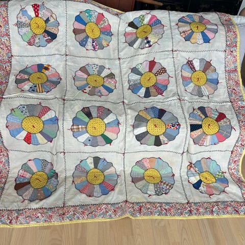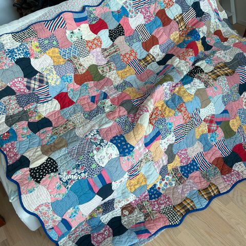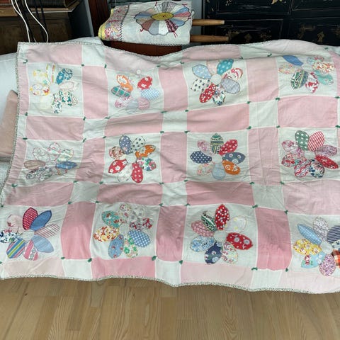 Quiltet Vintage tæppe i smukke pasteller