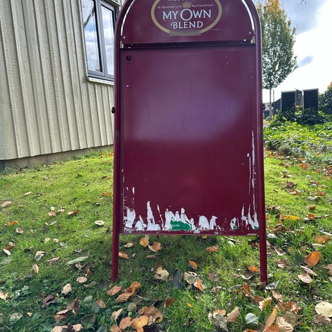 Kavot Tavle udendørs skilte tavle i metal med grå farve. Tavlen har en robust ramme og er designet til udendørs brug til visning af information eller reklamer. Lille skilt 58x100 cm., stort skilt ( med kridt-tavle felt i toppen), 78x170 cm.