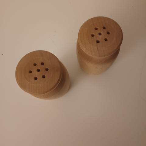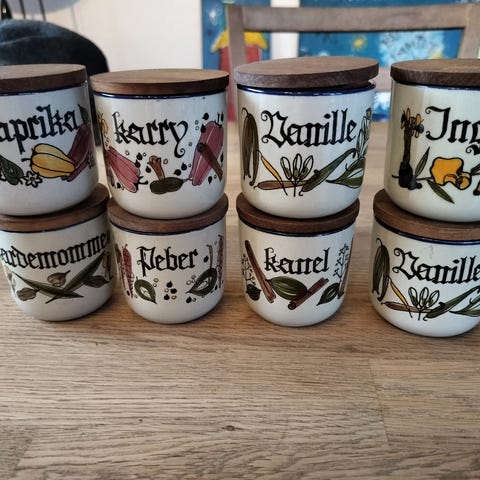 Flotte krydderibeholdere i træ.