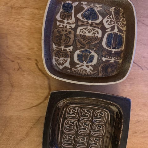 Platte / askebæger, H-Søe produkt, Platte/askebæger med guldkant ca 17,5 cm i diameter.