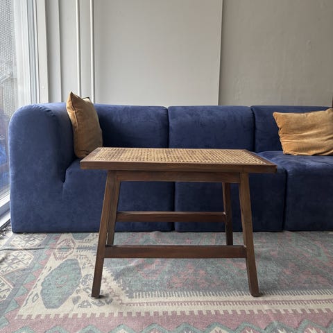 Sofabord i lys rattan - sandsynligvis fra 80'erne. Bordet er solidt og kan også bruges som bænk eller lille daybed. I meget pæn stand med kun overfladiske brugsspor - primært på den ene side af benene (billede). Er vist egentlig beregnet som sengegavl til montering på boksmadras.