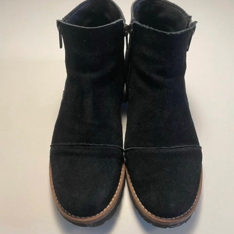 Kort støvle fra Billing i blåt ruskind med laknæse i størrelse 37 - helt ny og ubrugt - Hælhøjden er cirka 6,5 cm medens støvlen er cirka 25 cm.