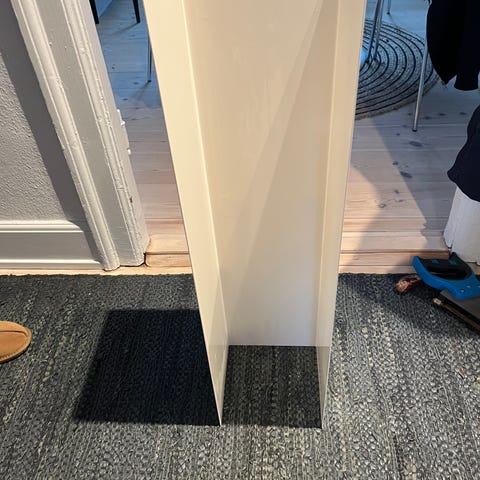 Hvid IKEA metal hylde. Ikke brugt så meget, så fremstår som ny. 78 cm bred, 32 cm dyb og 42 cm høj. Sender ikke pga størrelsen