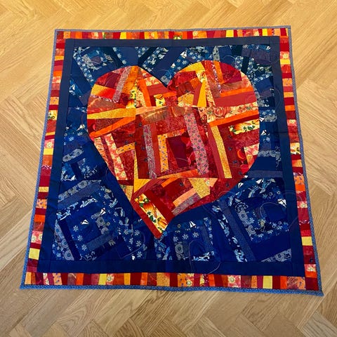 Kan bruges som kunst på væggen eller som tæppe til baby