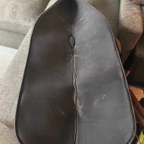 Trebenet skammel med læder på sæde. Til brug i naturen. Siddehøjde ( udslået skammel) 50 cm.